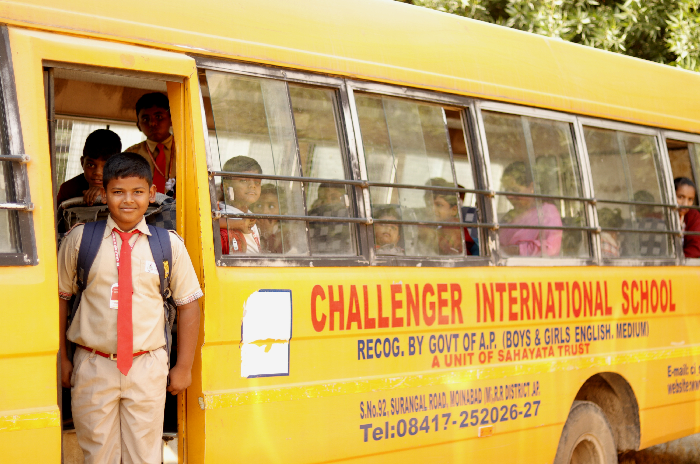 With a fleet of 14 buses Challenger International School buses cover all parts around Moinabad, Chevella and major parts of Hyderabad area. Our buses are easily recognisable and provide a safe mode of transportation to our students.